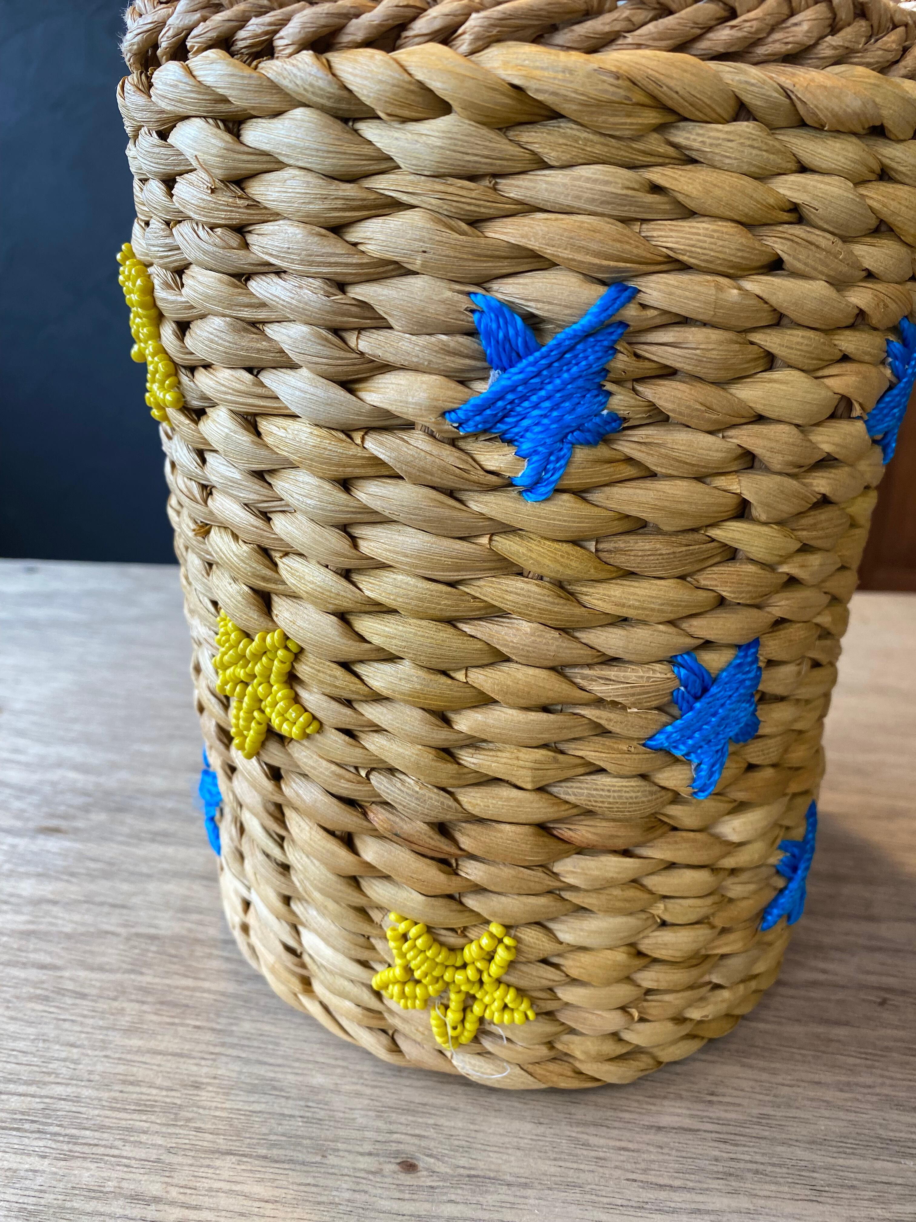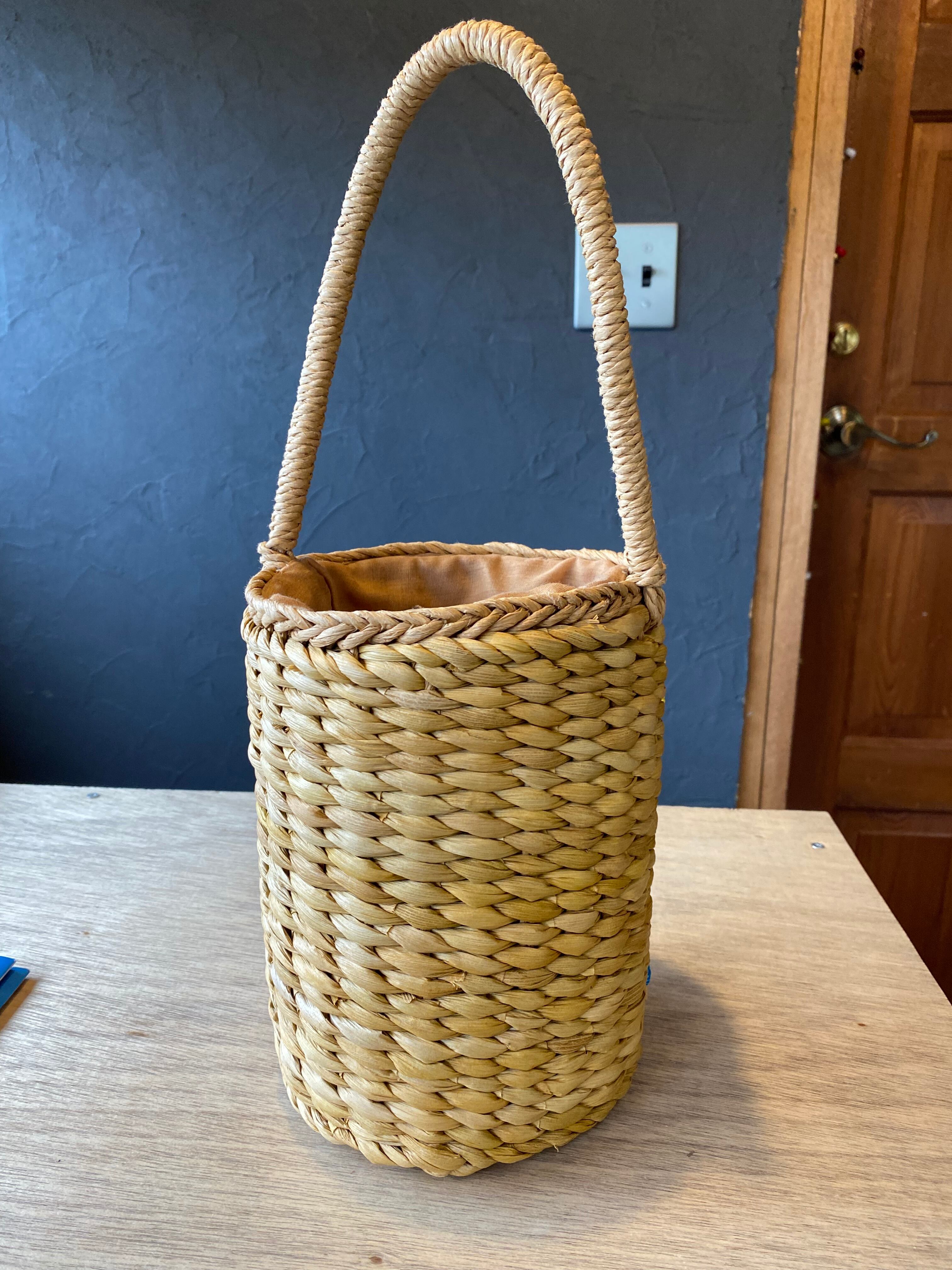 縦長の筒形がユニークなカゴバッグ。