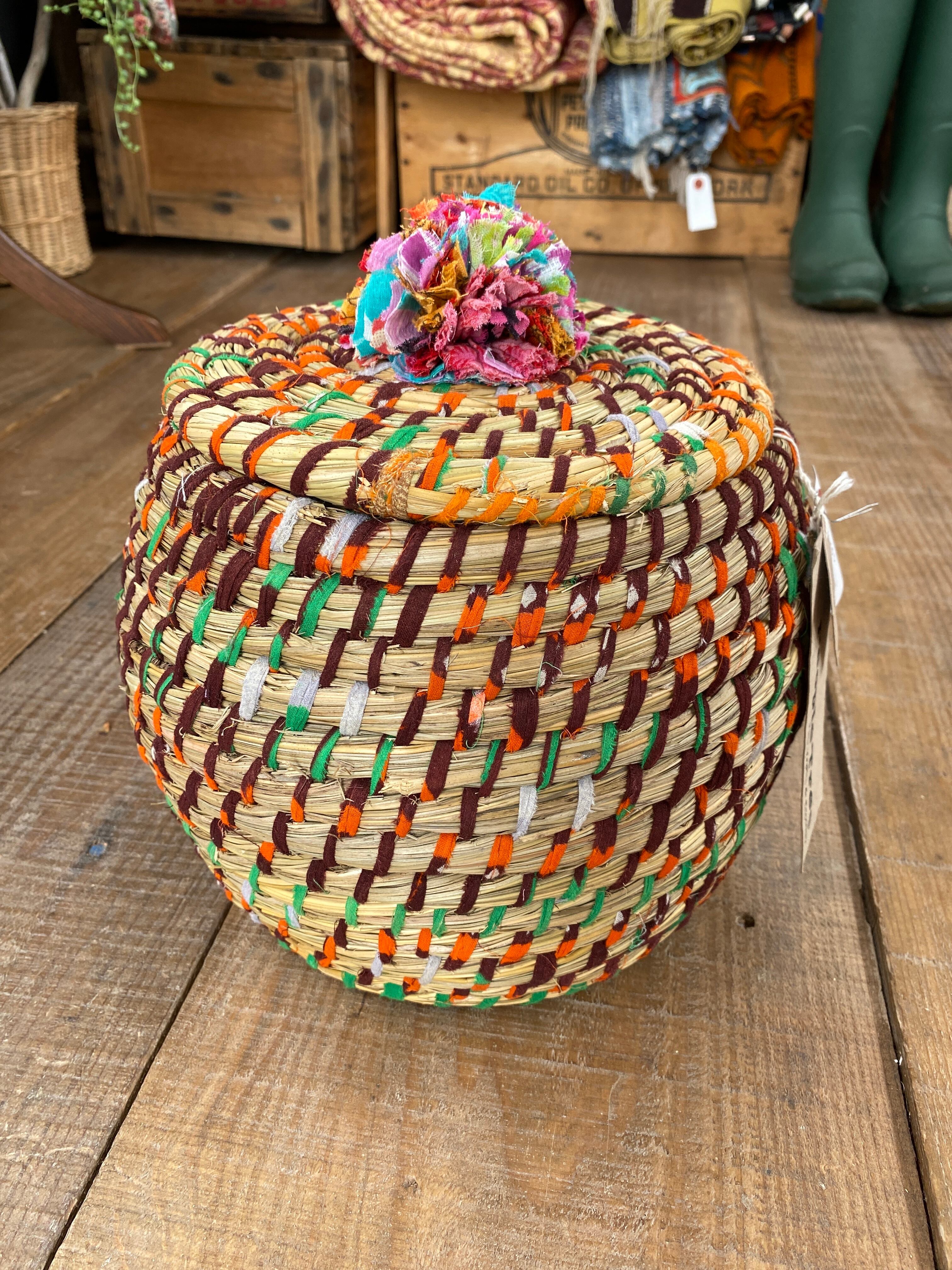 信じられないほど美しいバングラデシュカゴ。丁寧に手編みされた豊かなデザインと色合いは、まさに芸術品のようです。このカゴは、バングラデシュの伝統的な技法と現代のスタイルを融合させた特別な作品です。